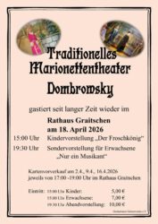 Die Eisenbahn im Gleistal von 1905 bis 1969 Am 28. März 2025, 19:00 Uhr im Rathaussaal Graitschen präsentiert von der Heimatstube Golmsdorf,mit Unterstützung von Peter Ganß und des letzten lebendenEisenbahner Horst Müller, vom Eisenbahnmuseum Serba.Zu sehen gibt es außerdem noch viele Ausstellungsstücke,die mit dem Esel verbunden sind. Unter anderem wird…